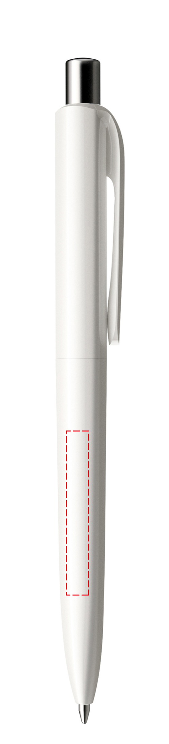 Die Ikone eines klassischen Schreibgerätes. Die zeitlose Interpretation der Dreiecksform, reduziert auf das Wesentliche und funktional bis ins kleinste Detail. Dem DS8 gelingt die Symbiose von exzellentem Schreibkomfort und werthaltiger Kommunikation. Seine zahlreichen Personalisierungsoptionen, Oberflächen, Farben und Materialien machen ihn zu einem vielseitig einsetzbaren Markenbotschafter. In der Ausführung mit vollfarben poliertem Gehäuse (PPP) lieferbar in vier Standardfarben, hergestellt mit einem Rezyklatanteil von 100% (Schwarz und Weiß) oder 50% (alle anderen Farben), gekennzeichnet mit dem internationalen Recycling-Symbol. Sondergehäusefarben ab 5.000 Stück. Fünf Druckflächen für Werbeanbringungen stehen zur Verfügung. Clip und Druckknopf sind in transparenter Oberfläche (bei Weiß und Schwarz sind Clip und Knopf auch vollfarben). Polierter oder satinierter Metalldruckknopf als Option. Ausgestattet mit der umweltfreundlichen auswechselbaren FLOATING BALL® lead free-Großraummine 1.0, Schreiblänge 5.000 m, Schreibfarbe Blau oder Schwarz.